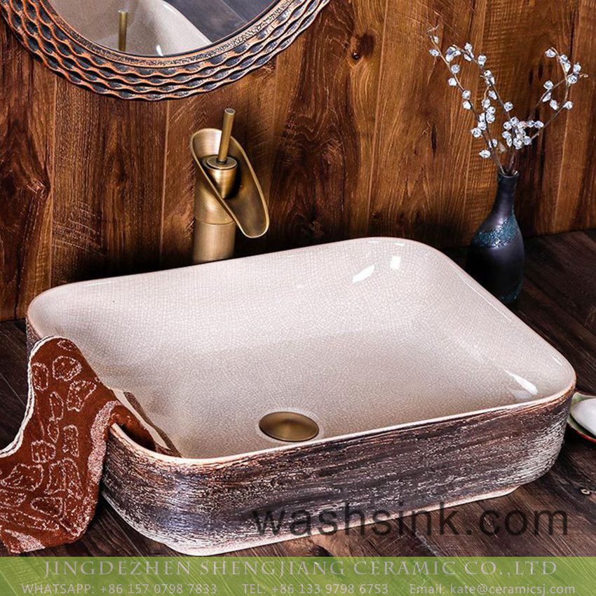 Hotel bathroom table top sink porcelain city Jingdezhen square white wall and imitating marble surface ceramic sink Chinese style retro original