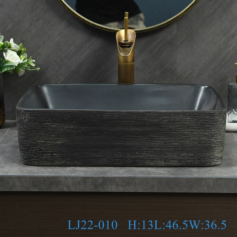 Jingdezhen Rectangle shape Brown and Black Pattern Ceramic Bathroom Sink Counter top Washbasin